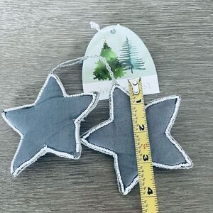 NWT set of 2 matching boho fabric gray and white beaded sequin sparkling Christmas ornaments.