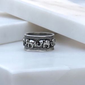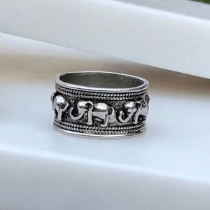 Boho Chunky Silver Tone Elephant Band Ring 8 Size - 8 Silver tone Alloy