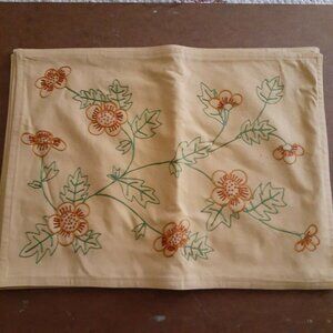 Boho Cloth Placemats Mustard Yellow Gold Embroidered Flowers Xochi India Cotton