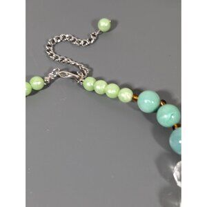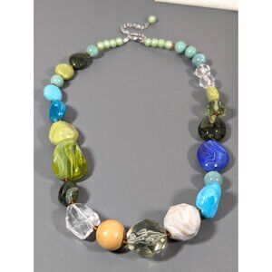 Boho Coastal Blue Green Chunky Bead Statement Necklace 28 in
