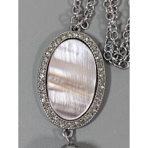 Boho Coastal Chic Abalone Shell Chain Tassel Rhinestone Necklace Long 32"