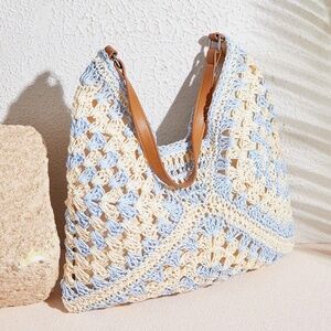 Boho Color Block Straw Vegan leather Strap Shoulder Bag