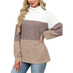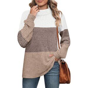 Boho Color Block Turtleneck Sweater – Oversized Long Sleeve Tunic Top for Women