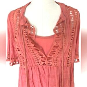 Boho Coral Lace Cotton Midi Tassel Embroidered Festival 2 Piece Dress Set