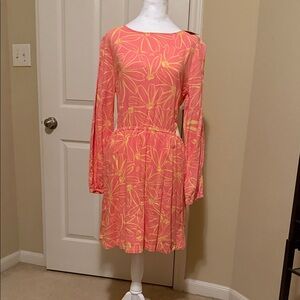 Boho Coral and Peach Chic Long Sleeve Lightweight Dress in Coral and Yellow