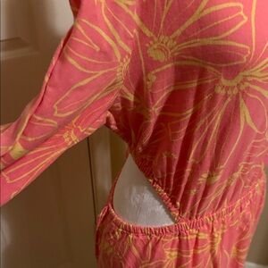 Embrace elegance with this chic long sleeve dress, featuring a stunning floral design in pink and yellow. Perfect for any occasion, it combines style and comfort effortlessly.
