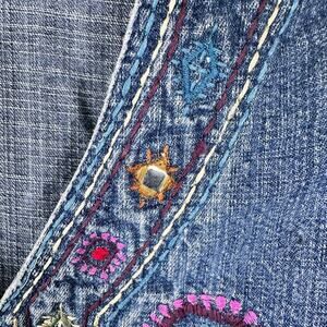 Boho Core Embroidered Denim Jacket Medium Indie Y2K Hippie Style
