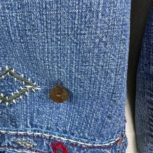 Boho Core Embroidered Denim Jacket Medium Indie Y2K Hippie Style