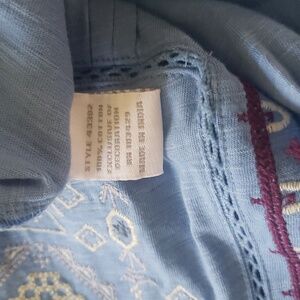 New With Tags Intro Woman's 2XL Light Blue Stunning Cotton Knit Embroidered Lace Notch V-Neck Sleeveless Swing Tank Top Pullover Soft Stretch Stylish Travel Shabby Chic Cottagecore Boho Floral Aztec Lightweight Packable Washable Business Casual Vacation Cruise Resort Festival Chambray