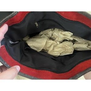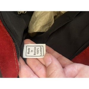 Boho Country Leather And Suede Shoulder Bag Red Brown Purse with Tapestry insert