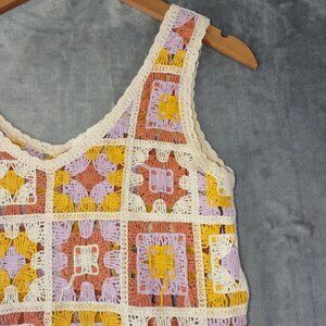 Boho Crochet Granny Square Tank Top Women's Yellow XS Rebellion Signature Knit