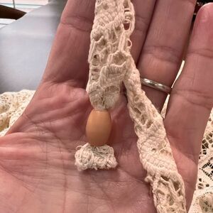 Stunning Maaji by Anthropologie vintage crochet kimono/robe cover-up, made in Colombia. Features a soft cream open-lace design with intricate crochet texture, flared sleeves, and a relaxed wrap silhouette that ties at the waist with a tassel detail. Lightweight and semi-sheer — perfect for layering over swimsuits or bralettes.