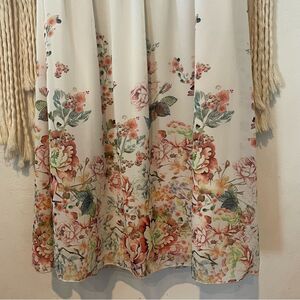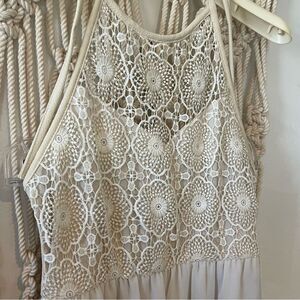 Boho Crochet Lace & Floral Print Halter Dress SZ SM Flowy Summer Festival Dress