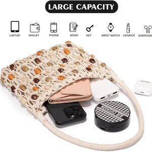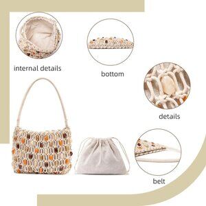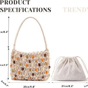 Boho Crochet Shoulder Bag Women's Beaded Beach Tote Summer Lightweight Purse