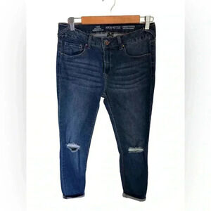 Boho Cropped & Distressed Denim Jacket, Sz L