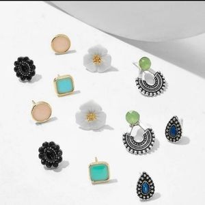 Bohemian Mixed Floral Jeweled Set of 6 Stud Earrings