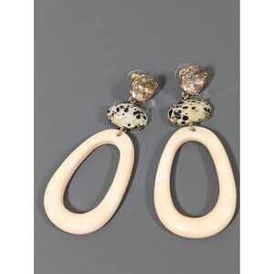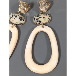 Boho Dalmation Stone Oval Dangle Rhinestone Earrings Bold Statement