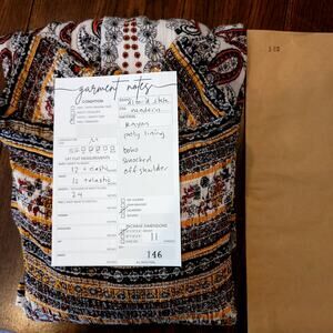 Close up of brand tags, fiber content, size and measurements provided in photos.