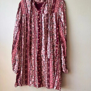 Andree By Unit Burgundy Wine Boho Print Balloon Sleeve Dress Women’s Sz Small S