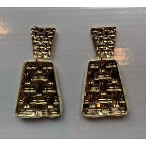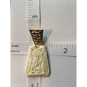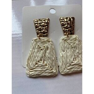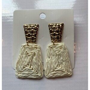 Boho Drop Earrings Woven Raffia Cream Ratan Geometric w/ Gold Toned Top Stylish