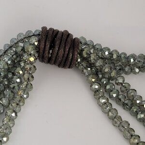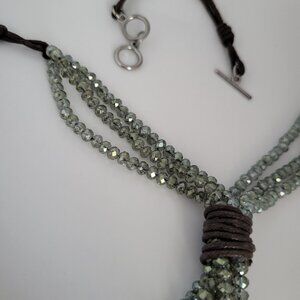 Boho Drop Tassel Necklace Cord & Crystal Bead Green AB Crystals