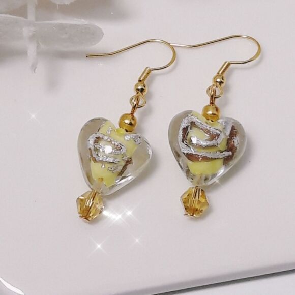 Boho Earrings #049L Yellow heart swirl glass handmade artisan beads drop earrin