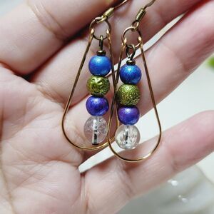Teardrop earrings Purple Blue Green glass mix of beads, teardrop shape is so flattering Find your meaningful treasure—each pair tells a unique story! #ShopSmall #MeaningfulJewelry #OOAK