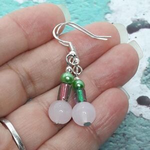 Boho Earrings Petite Pink boho hippie dangle earrings 403# OOAK silver earrings