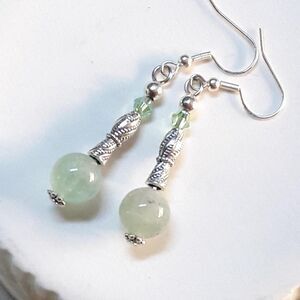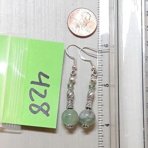 Boho Earrings 428# Fluorite Green gemstones 925 Silver Hooks 925 Stamped Bohemian Green