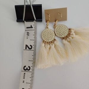 Boho Earrings Dangle Drop Western Carved Geometric Tassel Pendant Gold Tone Hook
