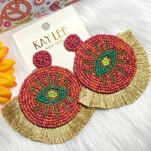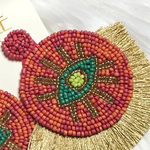 New! Huge Boho Earrings Eye Fringe Seed Bead Post Drop Dangles