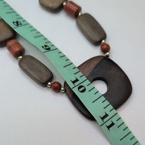 Boho Earthy Bead Necklace Brown Wood Square Pendant Long Statement Jewelry