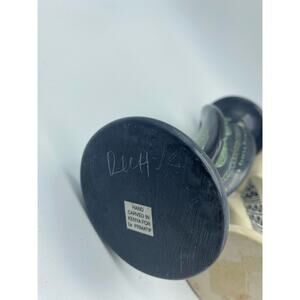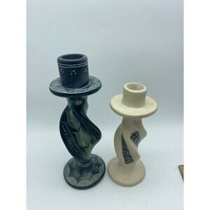 Boho Eclectic pair mismatched hand carved Soapstone candle holder Grey, white