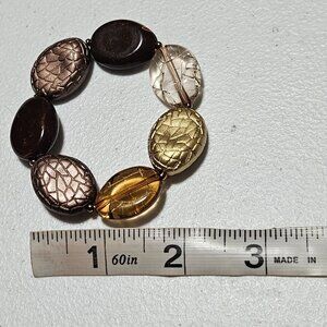 Boho Elegant Beaded Stretch Bracelet Textured Metallic Transparent Beads Jewelry