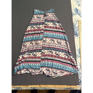 Boho Elephant Print Sleeveless Dress Bobbie Brooks XL Multicolor Cotton Blend