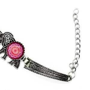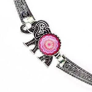 Boho Elephant Rhinestone Silver-Tone Bracelet