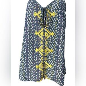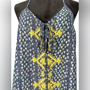 Boho Embroidered Cotton Tank Top Blue Yellow Geometric Print TR Designs size P