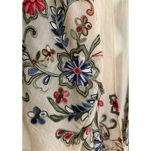 Boho Embroidered Kimono Duster OS Open Front Floral Long Sleeve Cardigan Jacket