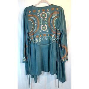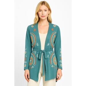 Boho Embroidered Open Front Duster Cardigan – Tribal Festival Vibes