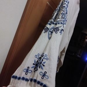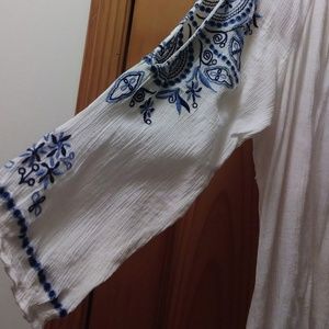 * White with blue embroidery