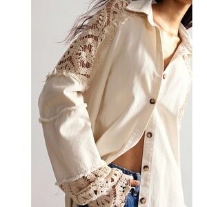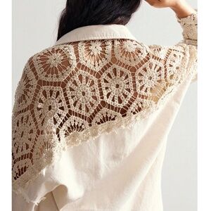 Boho Embroidered Semi Sheer Button Down Oversized Boyfriend Shirt