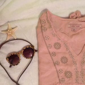 Tan embroidered neck line.