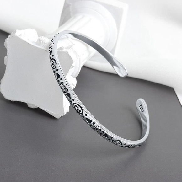 Boho Engraved 925 Sterling Silver Cuff Bracelet, 58cm Adjustable