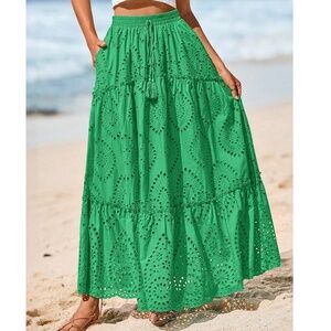 Boho Eyelet Lace stretchy waist Flowy Maxi Skirt