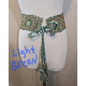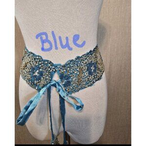 Boho Fabric Beaded Belt Handmade India 60" total length One size