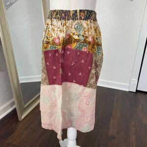 Boho Fairy Multicolor Burgundy Floral Whimsical Patchwork Mini Midi Skirt L