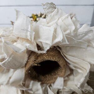 Cream color Muslin Cotton Fabric Strips with Jute twine Hair and Burlap Wings