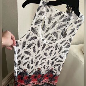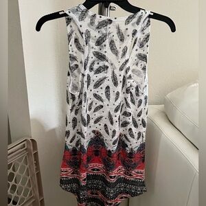 Elevate your style with this chic boho sleeveless racerback top featuring a striking feather abstract print.