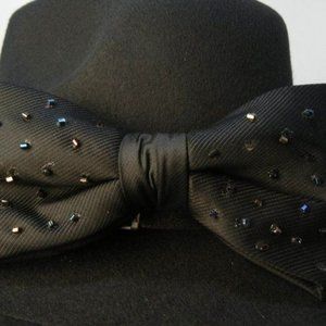 Hand sculpted Boho Fedora woman's fancy big bow hat, Black fedora with black beaded hatband handmade . Truly unique one of a kind not mass produced. Are you bold enough? See other big bows in my shop, you decide. Made from 2 upcycled designer vintage long ties. No two a like.