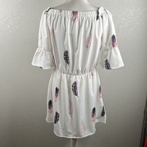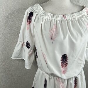 Boho Festival Coachella Off The Shoulder Feather Print Summer Dress Size Large
